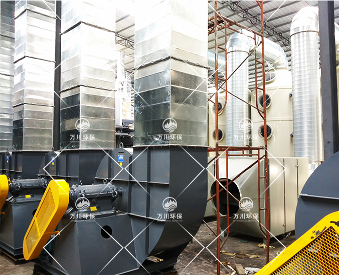 根據(jù)廠方提供的資料及現(xiàn)場勘察的情況。其噴漆廢氣的來源主要為無塵噴漆車間內(nèi)的5條自動(dòng)噴涂線。在生產(chǎn)過程中有噴漆,該工序產(chǎn)生了一定量含三苯有機(jī)廢氣和噴漆粉塵,該廢氣不僅對環(huán)境造成污染,而且對人體有較大的危害作用,同時(shí)也破壞了周邊的環(huán)境,造成了不良的影響,需進(jìn)行處理后排放。我們工程師分析了該廢氣的特點(diǎn)和以往的案例經(jīng)驗(yàn),采用了“水簾柜+噴淋塔+活性炭吸附塔”這套解決方案。