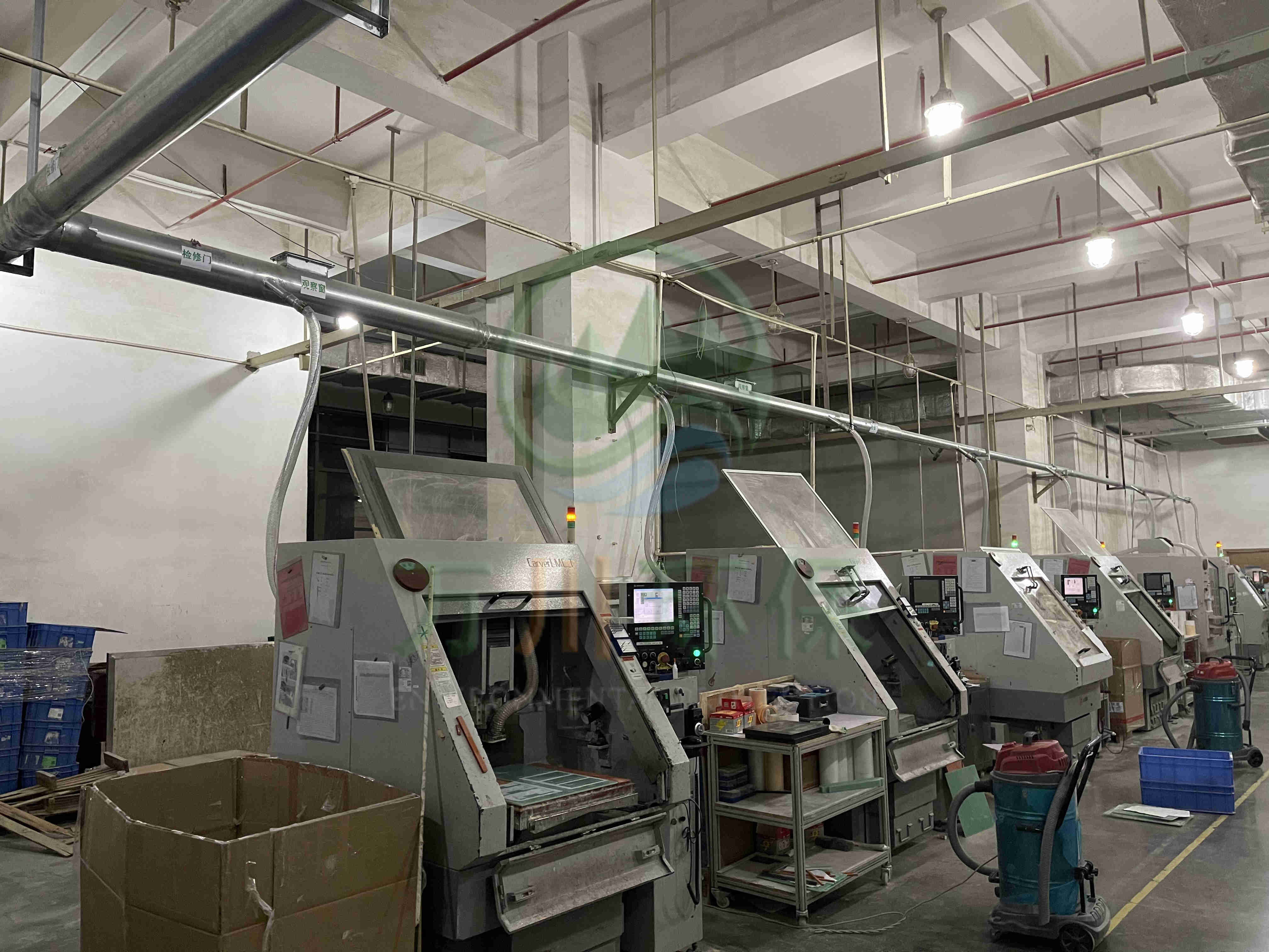 對車間11臺精雕機進行中央集塵,改善車間環境,符合當地排放標準和防爆要求