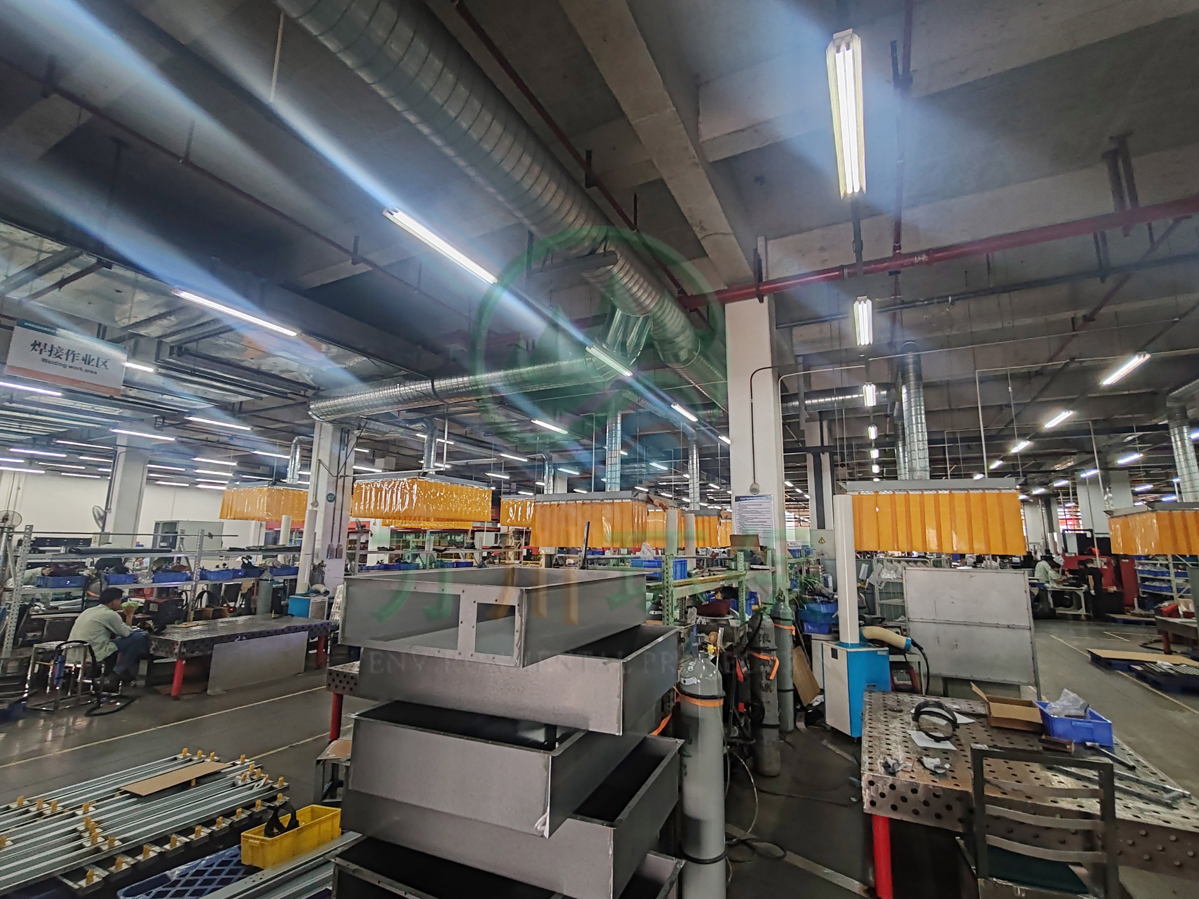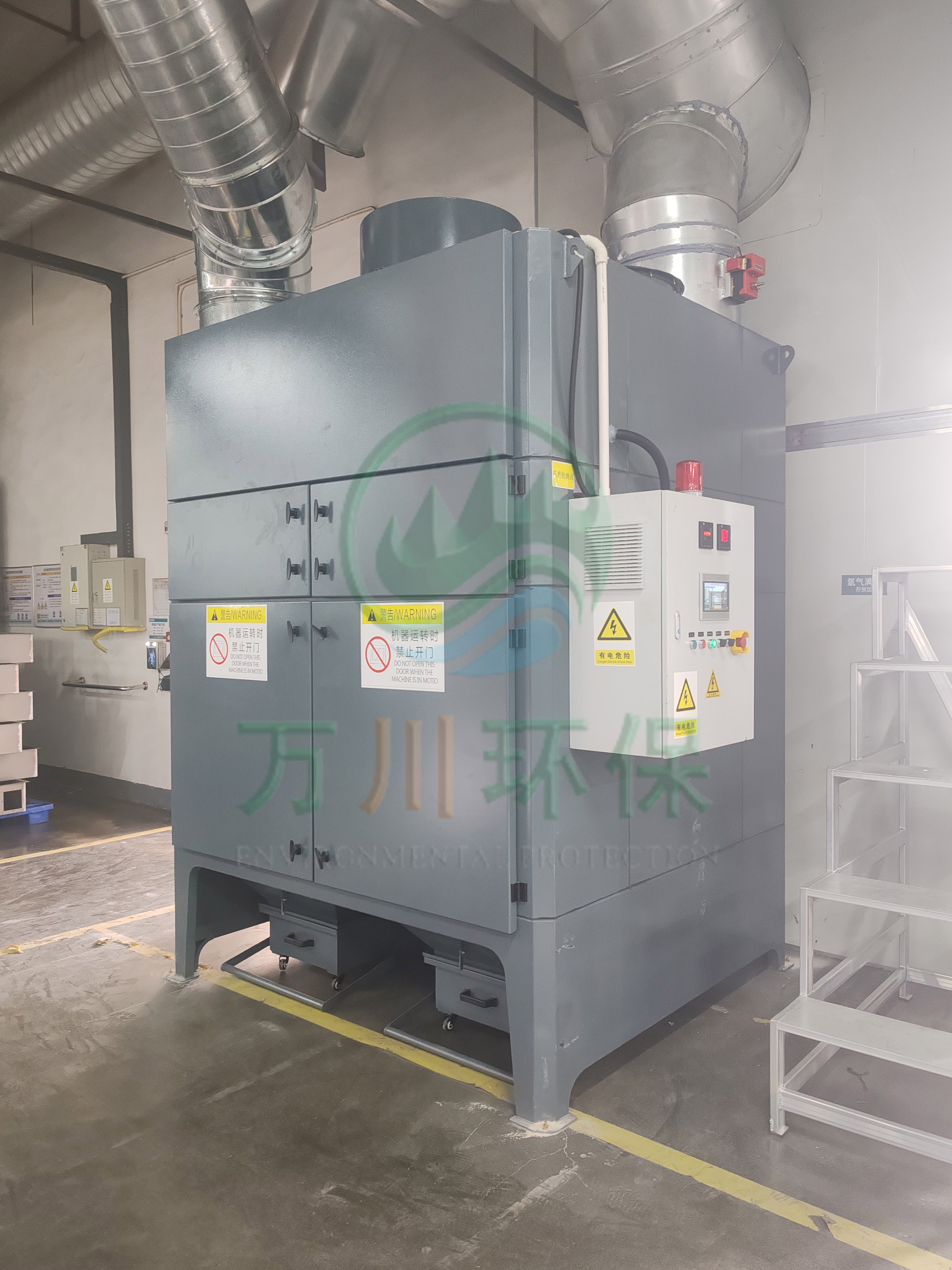 工程師根據(jù)現(xiàn)場焊接煙塵性質(zhì)、粒徑、現(xiàn)場工況等因素考量,故采用脈沖濾筒除塵器作為處理設(shè)備