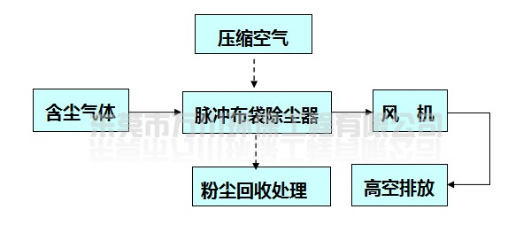 根據(jù)榮科公司的實(shí)際情況和以往的案例經(jīng)驗(yàn),我們技術(shù)人員依據(jù)國家及地方關(guān)于環(huán)保的法律和法規(guī)、工業(yè)企業(yè)設(shè)計(jì)衛(wèi)生標(biāo)準(zhǔn)(TJ36-79)、《廣東省大氣污染物排放標(biāo)準(zhǔn)》(DB44/27-2001)、《三廢治理工程技術(shù)手冊》廢氣卷,經(jīng)過對廢氣污染物和現(xiàn)有的處理技術(shù)的綜合分析,認(rèn)為該廠所產(chǎn)生的粉塵適合采用干式除塵法,所以我們?yōu)闃s科公司設(shè)計(jì)了一套風(fēng)量為35000m3/h脈沖布袋除塵器。