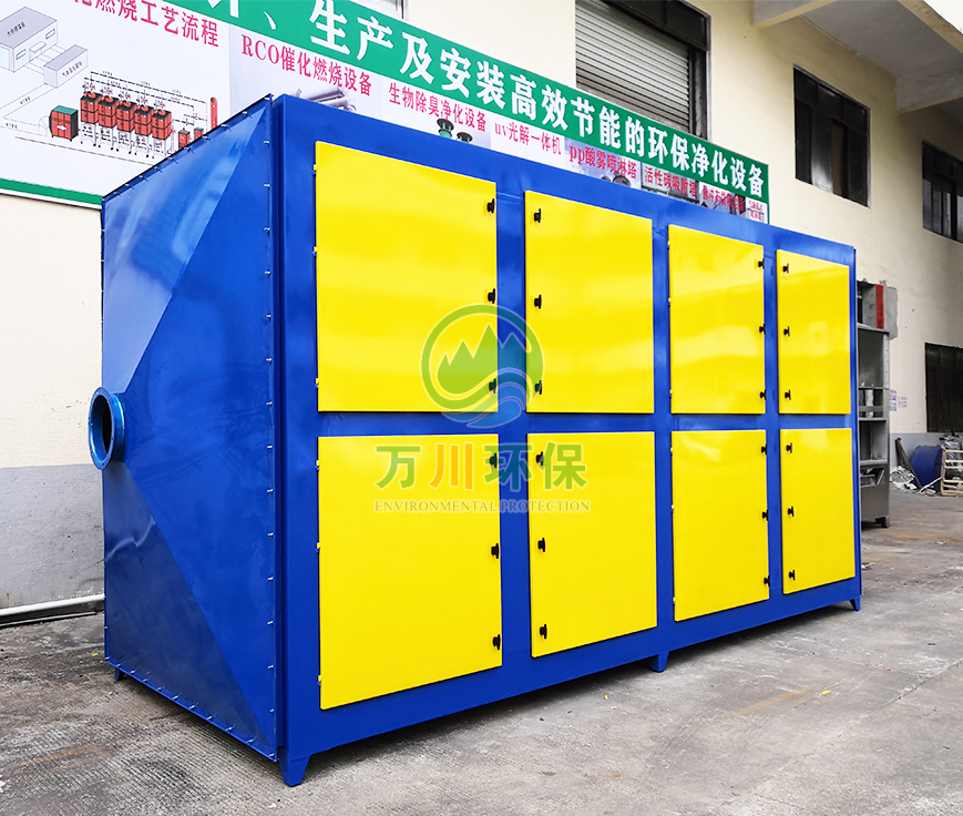 橡膠廢氣從管道進(jìn)入到設(shè)備內(nèi),穿過(guò)第一層噴淋層,用水沖洗廢氣,再進(jìn)入到第二、第三層填料層,去除水溶性的粉塵和廢氣,最后進(jìn)入到活性炭吸附層,利用活性炭的吸附力,吸附有機(jī)廢氣,達(dá)到凈化的效果。