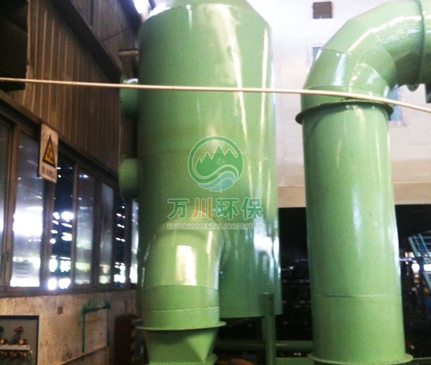 因生產打磨汽車配件時會產生大量的粉塵氣體,秉承對員工生產環境負責的態度,東箭汽車用品廠在對比多家廢氣處理廠家后,最終決定采用萬川環保廢氣處理設備--旋流板除塵塔。